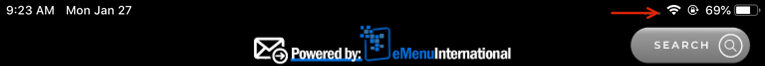 In order for the menus to get the update they must be connected to Wi-Fi. On the actual menu itself, take a look and see if the Wi-Fi symbol shows up on the top of it. Most of the time it is on the right side of the screen next to the Battery symbol (image example below). On different models it can be on the left side next to the phrase "iPad" (NOTE TO SELF ADD Wi-Fi Image). The Wi-Fi symbol is comprised of three bars, the less bars there are, the weaker your signal is.