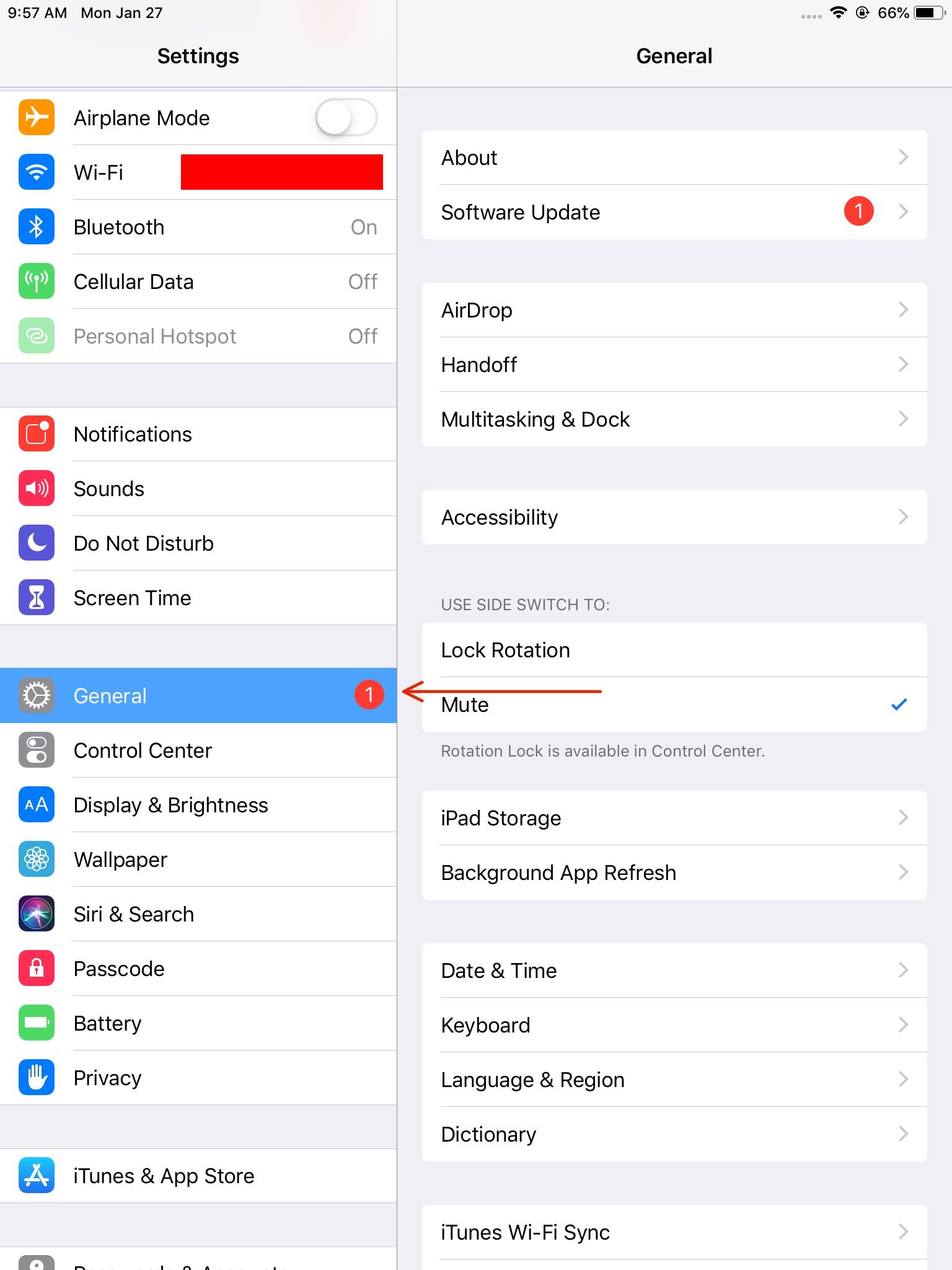 In the event that there is no Wi-Fi Symbol anywhere on the top of the menu, you would need to exit out of the menu using your administrative code. Once out of the menu, swiping from right to left should bring the next page, on that page should be a folder and in that folder is the settings of the menu itself. When you click on settings you should be greeted with the settings page split in to two parts, the left part and the right part. By default after opening the settings app, on the left General should be selected, if not please select General.